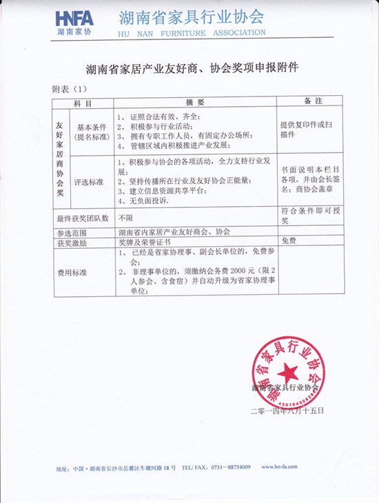 附件:湖南省家居产业友好商协会评选活动附件