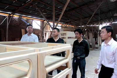 随后,在湘潭市林业产业协会秘书长陈常健的陪同下参观考察了其常务理事单位湖南湘鑫木业有限公司。湘鑫木业是一家以生产酒店、宾馆、办公类实木家具为主的生产型企业。被评为省林业产业龙头企业和湘潭市龙头企业,其自主设计生产的“湖湘华泰”大理石圆桌椅曾在首届湖南家具博览会荣获金奖。总经理冯义良对协会的到来表示热烈欢迎,他提到樟木作为湖南本土实木家具的重要用料,其香味具有驱蚊防虫等作用,希望公司有朝一日能够研发一条让樟木文化作为湖南特色的发展道路。