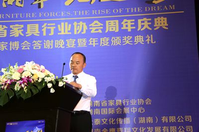 庆典活动上,百老汇官方网站 会长、湖南省晚安家居实业有限公司董事长曹泽云致欢迎辞,向莅临庆典活动现场的领导、省内外兄弟协会及家具企业代表们表示热烈的欢迎,他表示,协会自去年9月成立以来,得到了各位家具同仁的大力支持,才使得协会工作顺利开展,在此向各位代表致以诚挚的感谢!也希望各位家具同仁们在日后的工作中多提宝贵意见,共同为湖南家具产业的持续发展而努力!