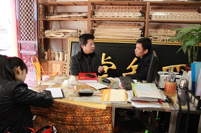 随后协会一行来到怀化市恒华木雕、加佳家居广场。在与恒华木雕总经理李彪的交谈中了解到,目前湖南仿古木雕装饰行业面临人工成本高、专业技术人才紧缺以及行业间缺少交流平台等一系列问题。李总说仿古木雕装饰品的市场需求很大,对产品的设计和生产工艺要求很高,所以专业的设计人员和技术人员迫切需要引进和培养,希望协会能像沿海地区一样建立标准的人才培训基地,培养湖南本地的生产设计人才,同时通过组织家具行业交流会、家具展览会等活动来加强与外省同行的交流,学习他们的成功经验。