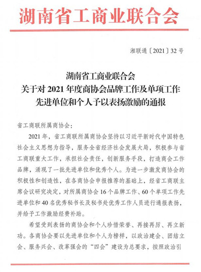 经省工商联主席会议研究通过,百老汇官方网站 获评“2021年度商协会品牌工作先进单位”,我会执行会长兼秘书长刘发刚获“优秀秘书长”荣誉称号。
