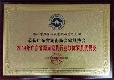 蝶依斓荣获2014年广东省湖南家具行业软体家具优秀奖
