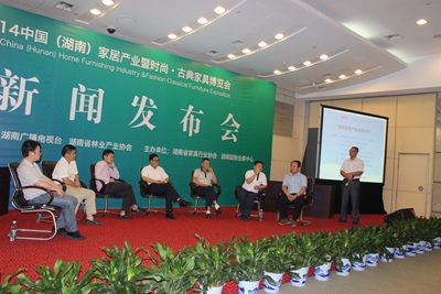 2014年6月30日上午,“2014中国(湖南)家居产业暨时尚.古典家具博览会新闻发布会”圆满落幕之后,湖南家居产业发展论坛在湖南国际展览中心一楼新闻中心举行。协会常务理事单位、副会长单位、理事单位、企业家代表及湖南省各地州、市、县家居产业商会、协会会长、秘书长和湖南广播电视台、湖南金鹰晋翔文化发展有限公司副总经理彭玲等130余人参加了此次论坛。
