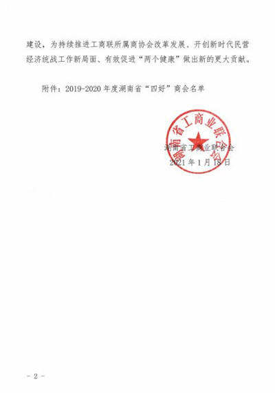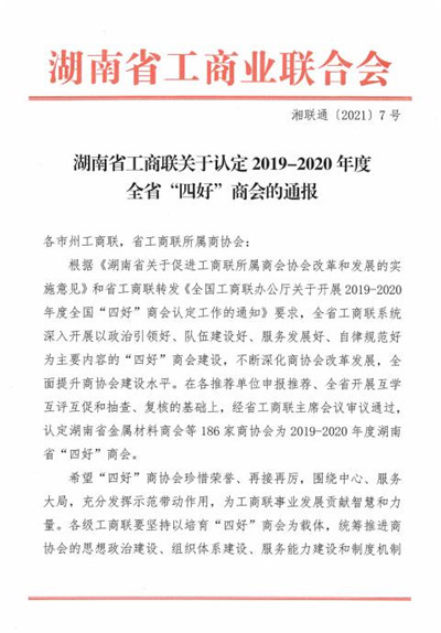 被认定为2019-2020年度湖南省“四好”商会。