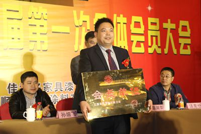 期间,4001澳门老百汇网址是多少 秘书长刘发刚代表百老汇官方网站 向南康湖南商会成立表示衷心的祝贺,并受协会曹泽云会长委托与湖南晚安家居实业有限公司副总裁汤克俭先生共同将“湘人携手共筑家具湘军梦”牌匾赠送南康湖南商会会长曹炎华先生,并希望南康湖南商会在南康地区打出湖南品牌,叫响全国,走向世界。