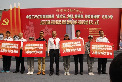 株洲是革命老区,秋收起义、朱毛第一次见面、建立湘赣边根据地,都发生在这片热土。李立三、杨得志、左权等同志的革命生涯也与株洲紧紧地联系在一起。这次我们援建四所红军小学,目的就是:对党和政府的感恩;对革命老区人民历史贡献的感恩;对革命前辈无私奉献与英勇付出的感恩;为革命老区子孙后代,享受更好的教育条件尽微薄之力。