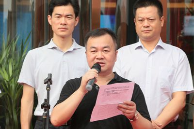 红星井湾子家居广场总经理彭旭在开业仪式上发言